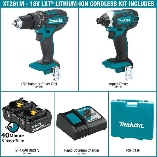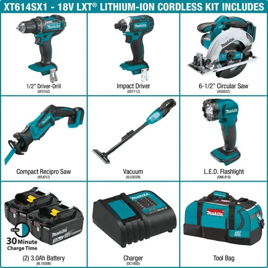 - Batteries : Quatre batteries lithium-ion 18V LXT avec charge rapide